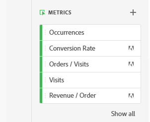 Tip: You can see all dimensions available by clicking Dimensions or clicking ‘Show All’ on the left. Additionally, you can search for the dimension you need in the top left search bar (look for ‘Search components’).