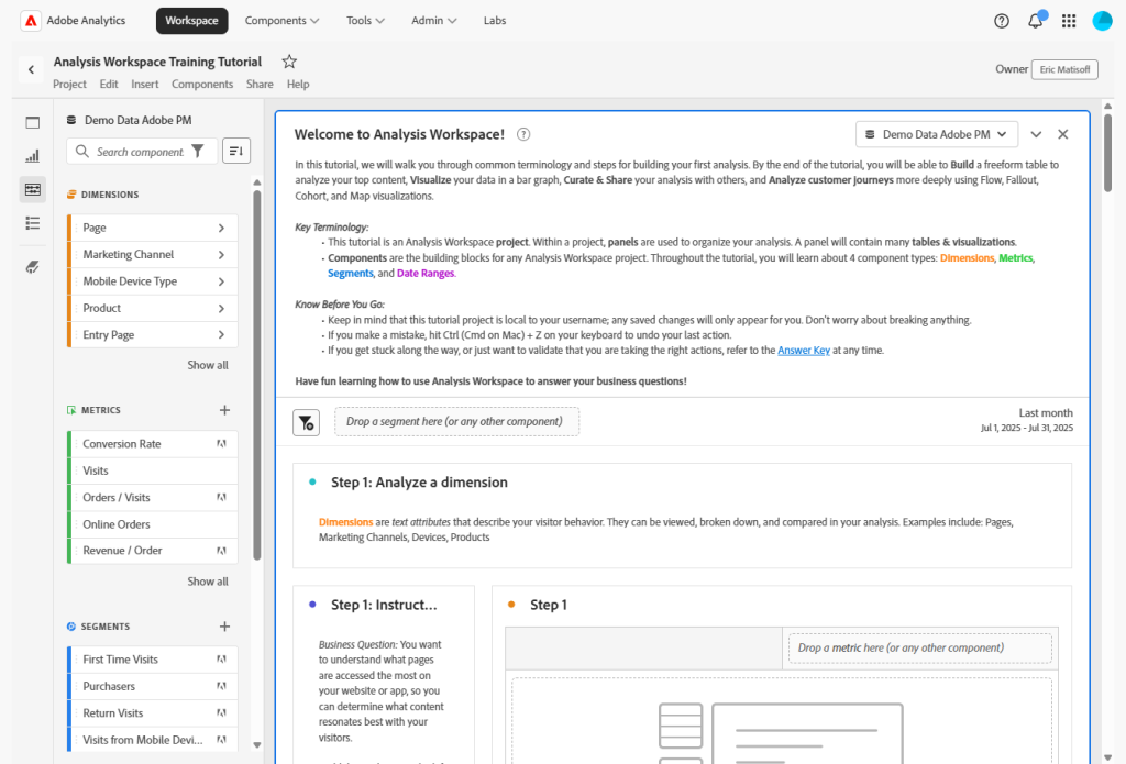 このチュートリアルを通して、Analysis Workspace を使って ビジネスの疑問に答える方法 を楽しく学んでいきましょう!
