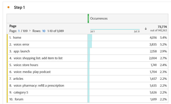 You now know the top pages that your visitors are accessing, by ‘Occurrences’, which is a simple counting metric. You are ready for step 2.